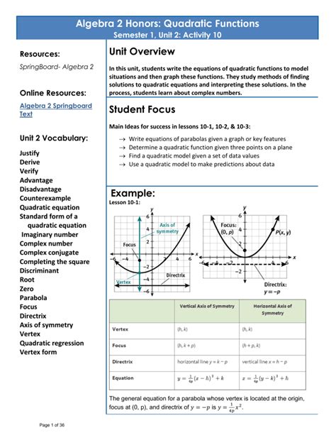 Read Online Springboard Unit 3 1 Quadratic Functions And Complex Numbers Answers Pdf Doc